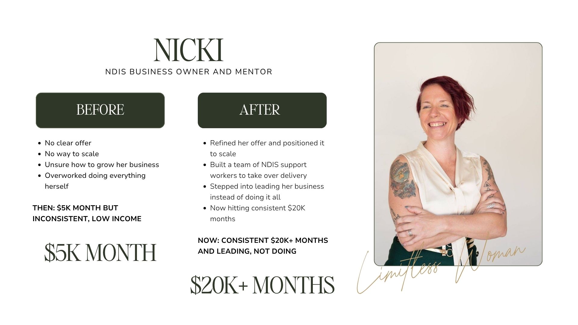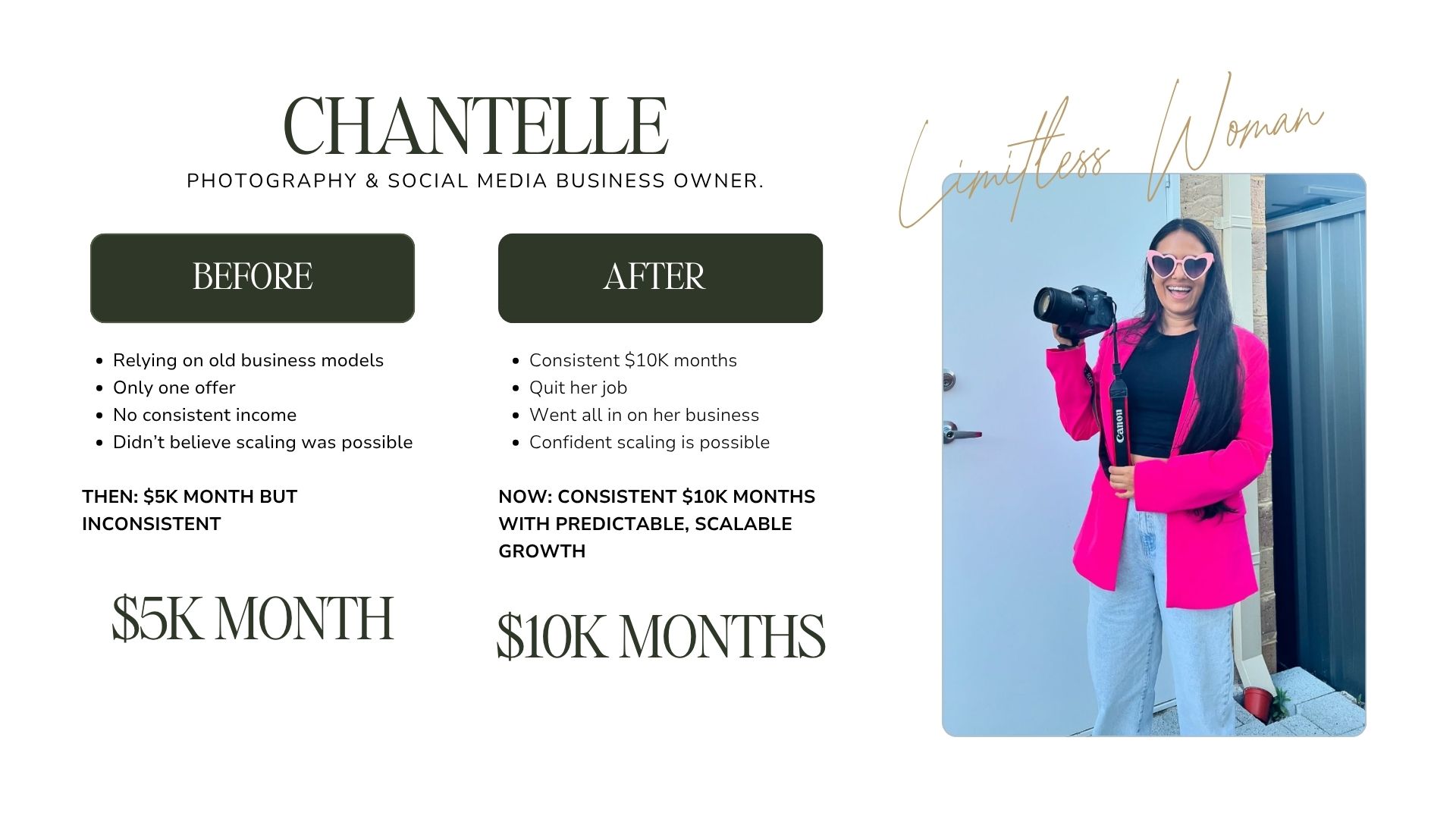 Inside Limitless, you’ll rebuild how you lead with systems that support you, profit that sustains you, and a business that thrives without draining you.