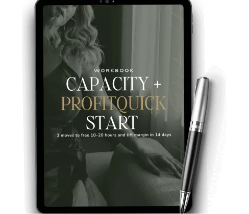 Grab your free workbook and learn the 3 simple moves to free 10–20 hours a week and lift your profit margin, fast.
