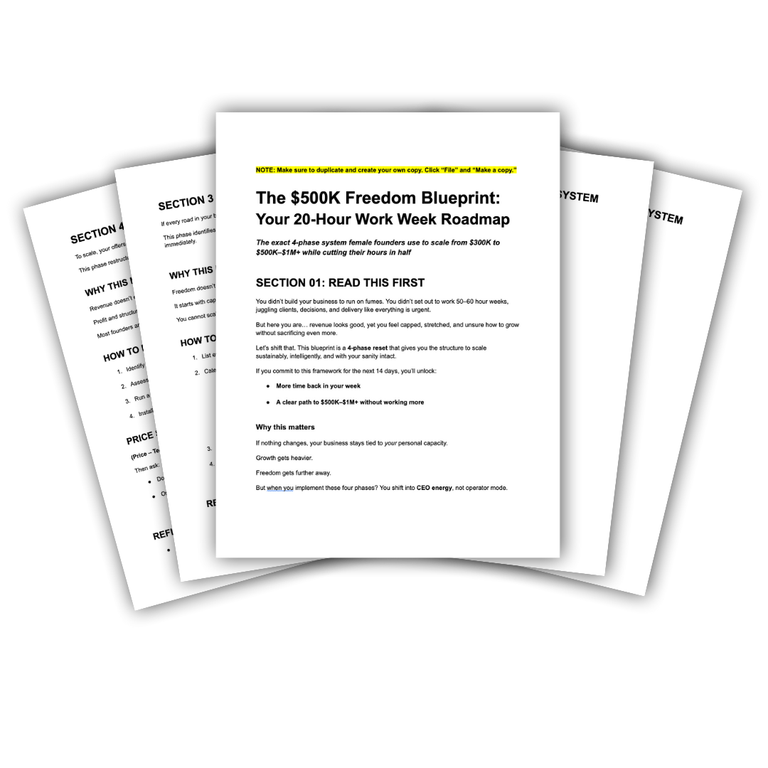 This will show you the exact 4-phase system female founders use to scale from $300K to $500K-$1M+ while working 20 hours per week or less
